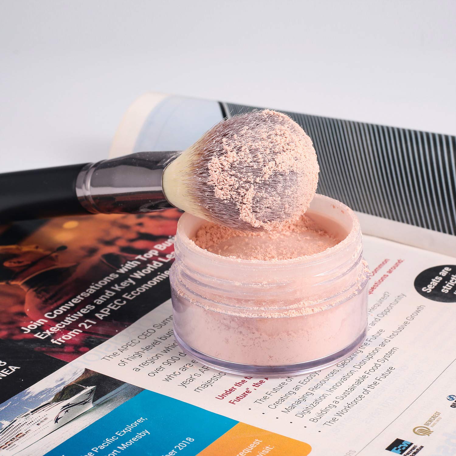 FeatureThe powder makeup brush with large, fluffy and dense head,perfect for applying and setting face makeup base with full coverage of powders, minerals as well as a flawless finishPlush hairs are ultra soft, do not absorb makeup products, easy for cleaning and maintainingHand-cut hairs with the perfect shape, allow for even and precise application (Total length 6.7", Hair 2.2"*1.6")Dull-polished handle makes it easy for hold, great for control and smooth for applying makeup